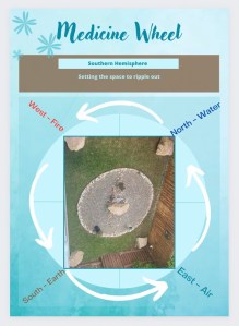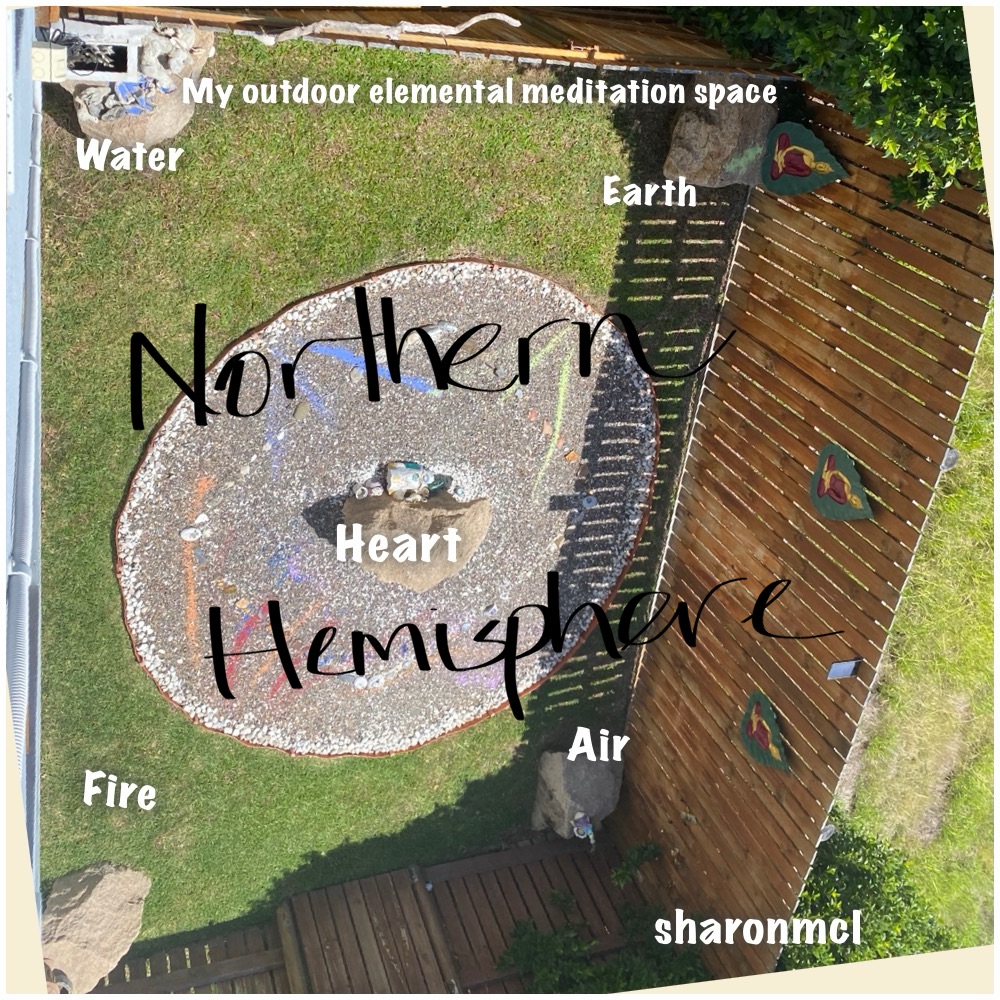 However, in 2023 I learnt that my view of the medicine wheel had been focussed in the northern hemisphere and as I live (in this lifetime in the southern), it would be interesting to change it accordingly. I asked the large rocks if it was ok, and they seemed to be ok with multiple elements. Where east is still air, north is water, west is fire and south is earth. The centre to me is always heart. Then on another level there is above and below. Another theory I am currently playing with is the directions can hold more than one element. What if? Each direction could hold the highest intent and good, in each moment. Is it possible for a direction to hold the perfect balance, through time and space? I suggest working with what is “right” for you.