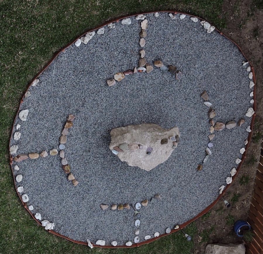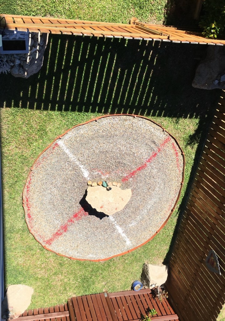 Today, and since 2015 I have used the medicine wheel as an anchor point for planetary healing & assisting to raise the consciousness and energy of humanity. Again I intuitively was guided to create a rock garden. For me, I dream about a design, and then create it. I want to share with you and show you how you too, can create your own rock garden/medicine wheel/outdoor meditation space.