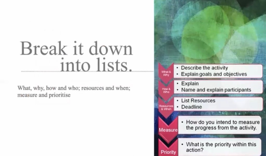 Wk4 Continued Action – ensure you choose progressive action each week.