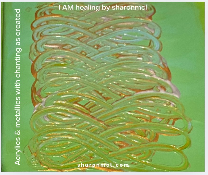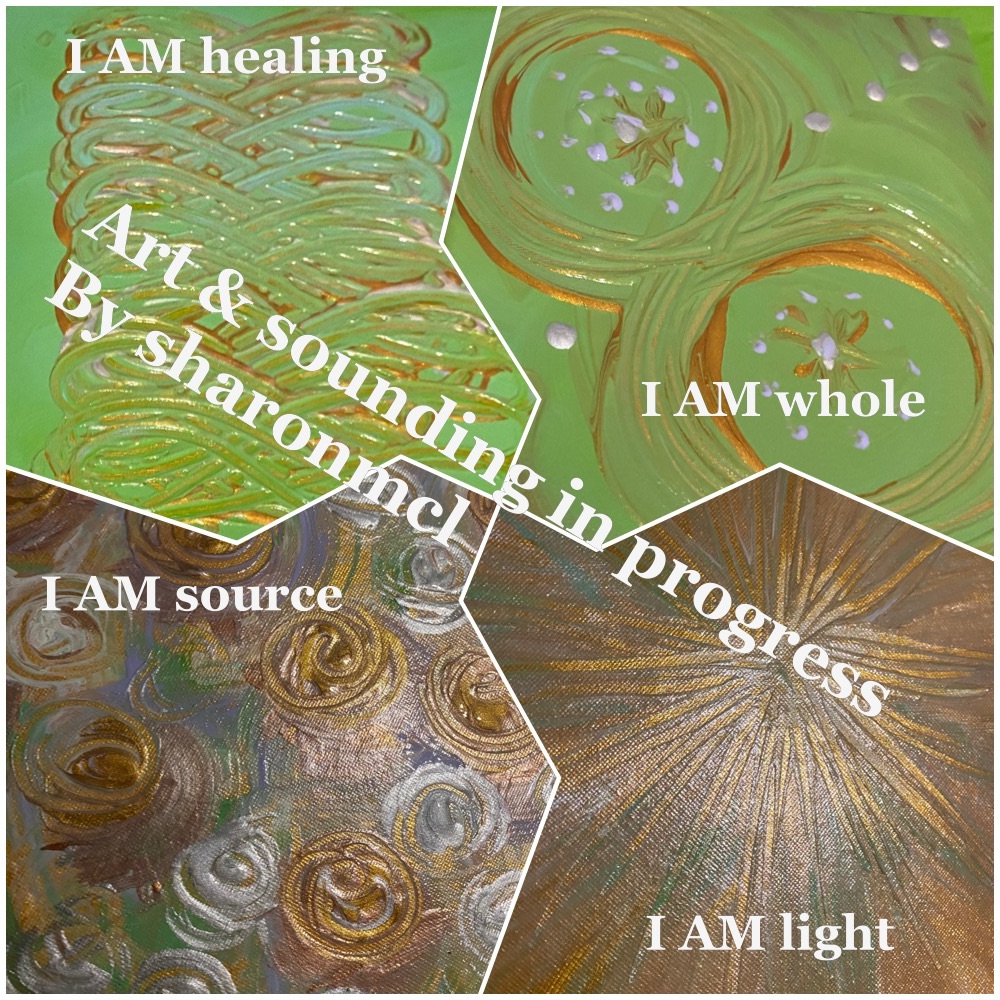 ‘I AM” series: I am healing, I am whole, I am source, I am light; I am love, I am peace, I am truth. These mantras are sung while creating the intuitive acrylic art.this series is still in progress.